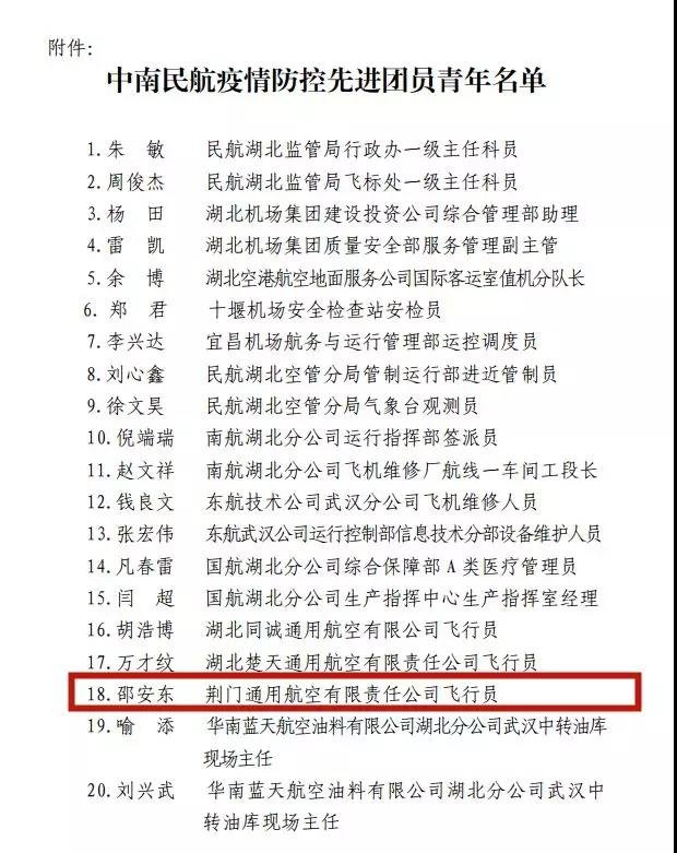 近日,從民航中南地區(qū)管理局獲悉,荊門通航飛行員邵安東同志被中南民航青年工作共建委員會評為“中南民航疫情防控先進團員青年”。這既是對邵安東同志的高度表揚,也是對航空人參與疫情防控工作的高度認可。